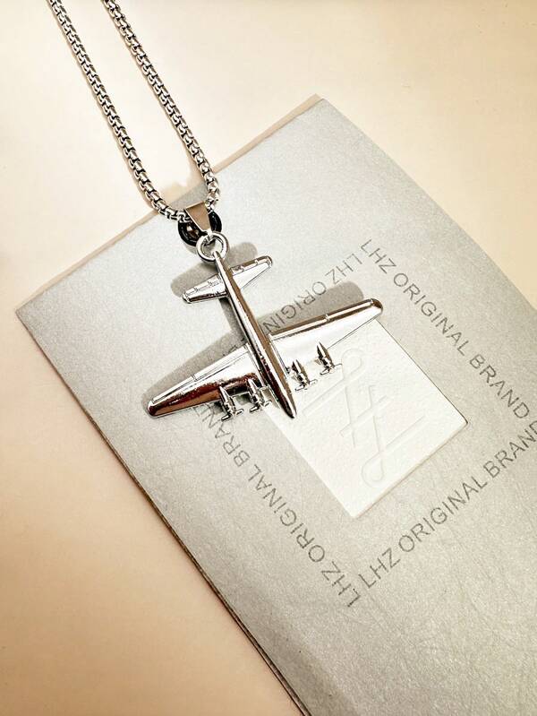 1pc Stylish Hip-Hop Style Airplane Pendant Stainless Steel Necklace For Men Couple, Daily Wear Valentine's Day Gift Can Be Layered