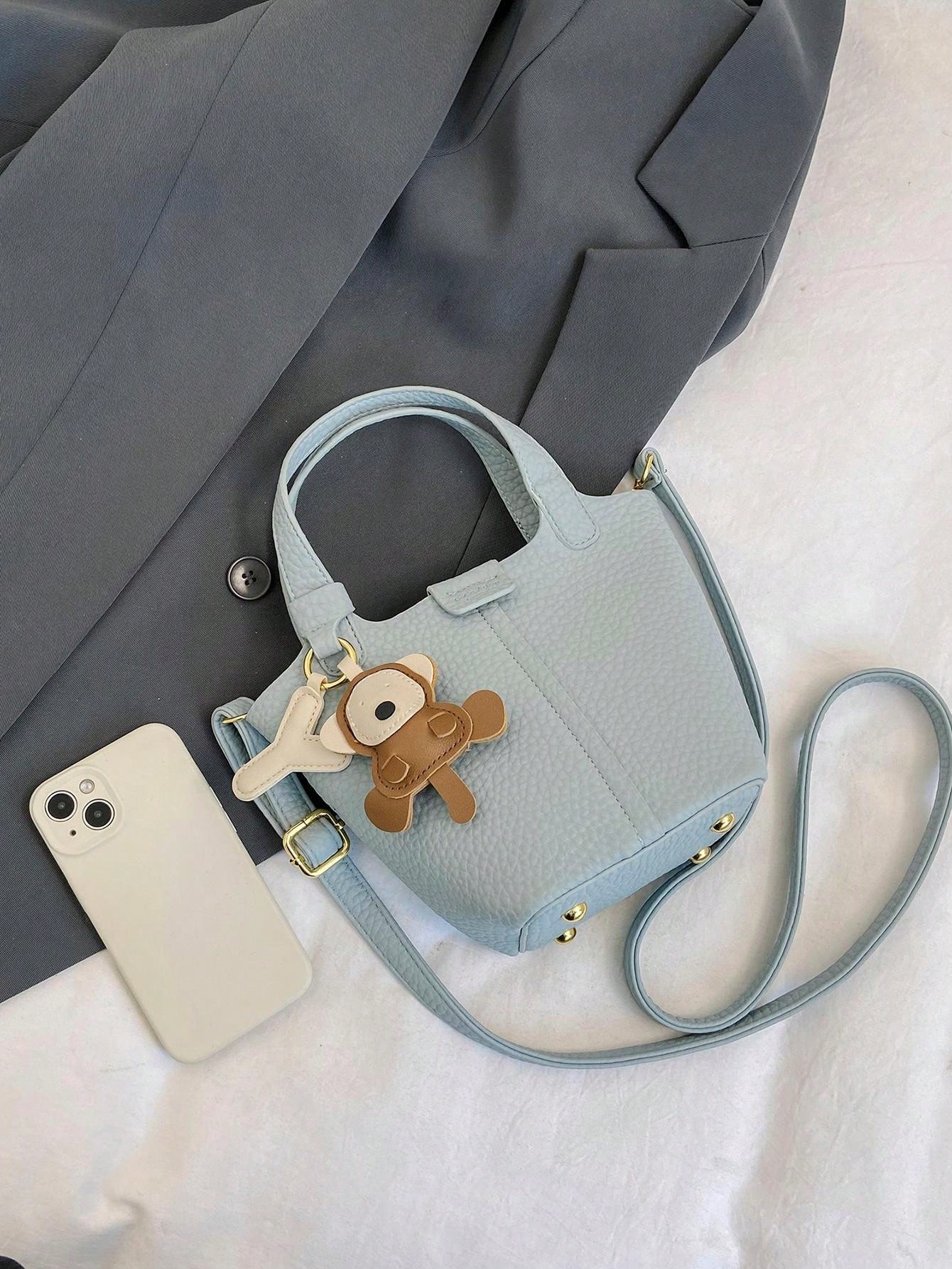 1pc Stylish Light-Colored, Solid Color All-Match Bag With Pendant (9.05in*6.29in*5.11in) Made With Pu, Scratch-Resistant, Durable Fabric, With Long Shoulder Strap, Suitable As Shoulder Bag, Crossbody Bag, Tote Bag, Bucket Bag For Daily Activities, Dating, Work, Gifts, Valentine'S Day, Women'S Handbag