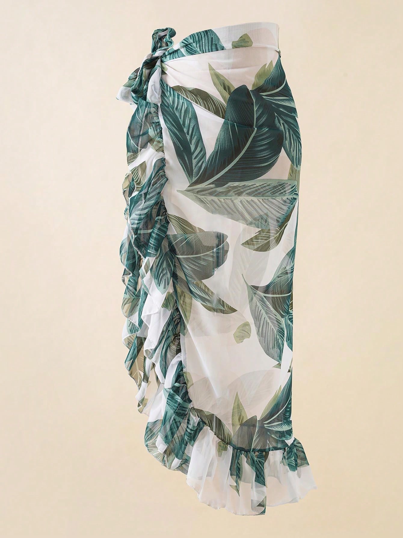 1pc Summer Beach Cover-Up Skirt Floral Print Chiffon Sarong Wrap With Tie For Bikini Swimsuit