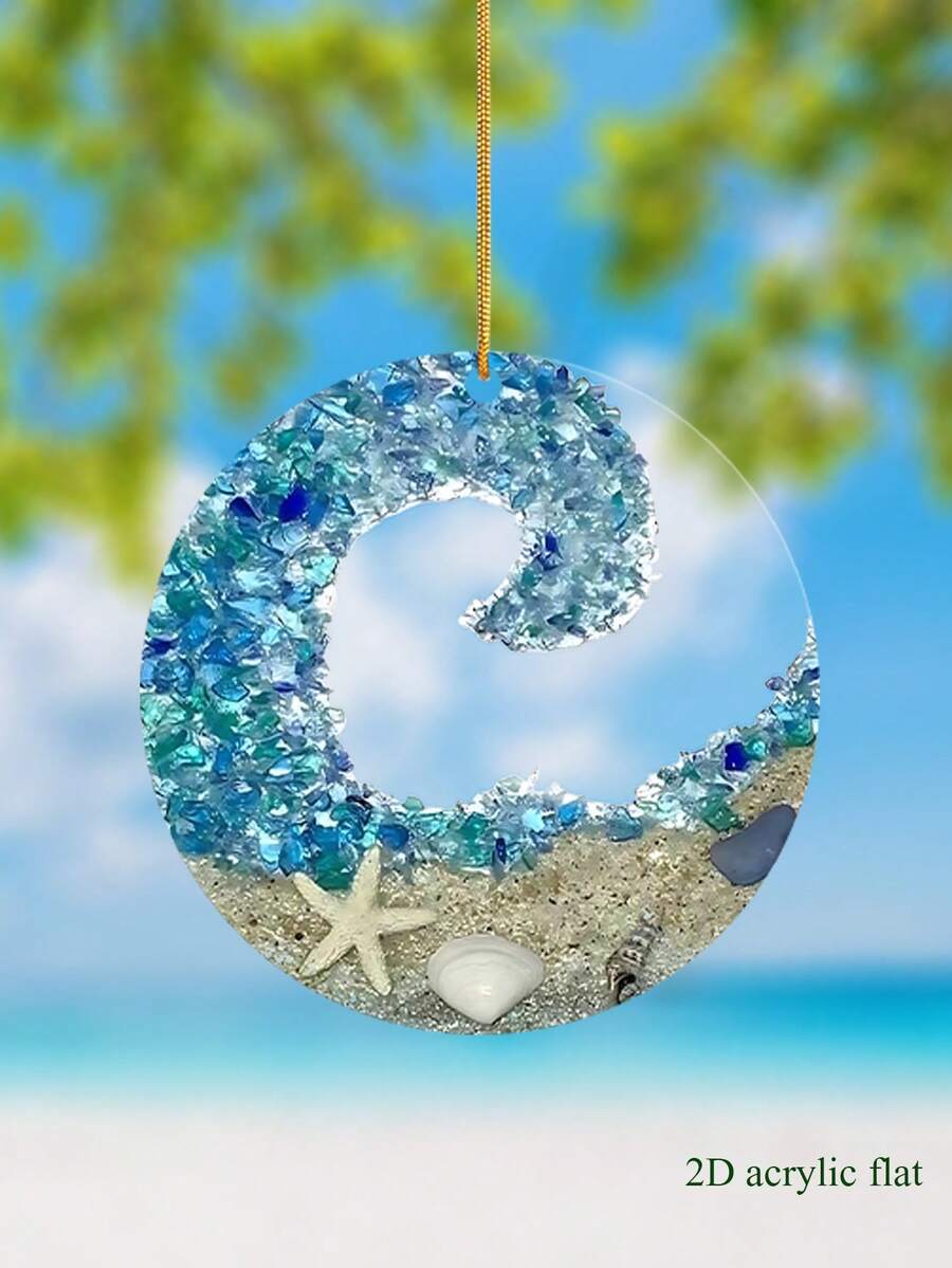 1pc Summer Seaside Themed Acrylic Transparent Pendant With Golden Cord For Vacation Travel Decoration And Souvenir, Suitable For Backpack, Door, Atmosphere, Party And Bedroom Decor, Gift For Family, Lover And Friends