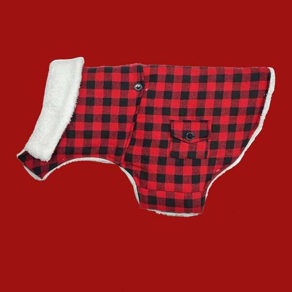 1pc Super Thick Chest & Waist Adjustable Magic Tape Design Pet Clothes With Red & Green Plaid, Suitable For Pets In Different Sizes, For Christmas Or Winter Season