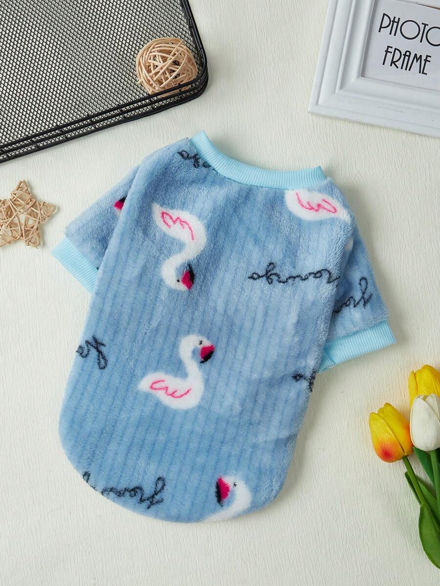 PETSIN 1pc Swan Printed Blue Flannel Pet Sweatshirt Without Hood For Keeping Warm
