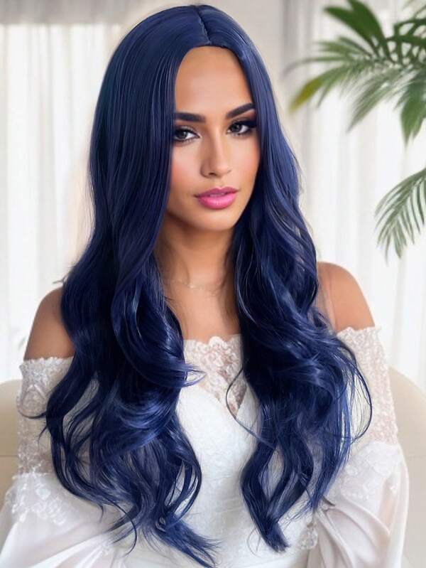1pc Synthetic Wig In Dark Cyan Color, 28 Inches Long With Middle Part, No Bangs. Suitable For Party, Cosplay And Daily Wear In Halloween, Christmas And Other Occasions.