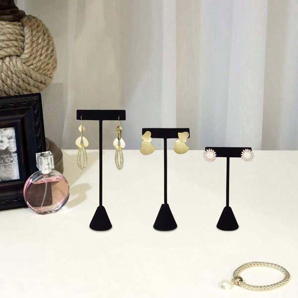 1pc T-Shaped Black Velvet Earring Display Stand With Holes, Suitable For Window Display And Counter Decoration Props