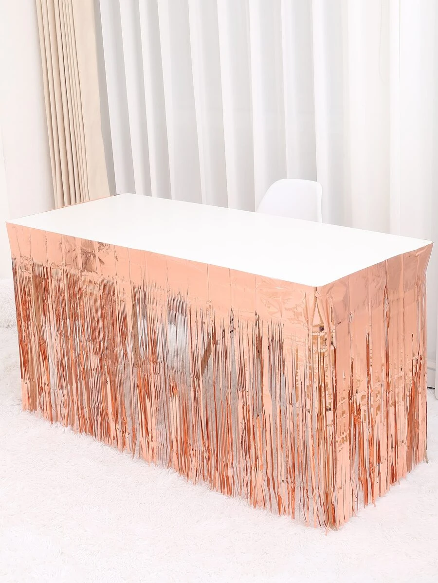 1pc Tassel Design Disposable Table Skirt, Rose Gold Metallic Table Wrapper For Party