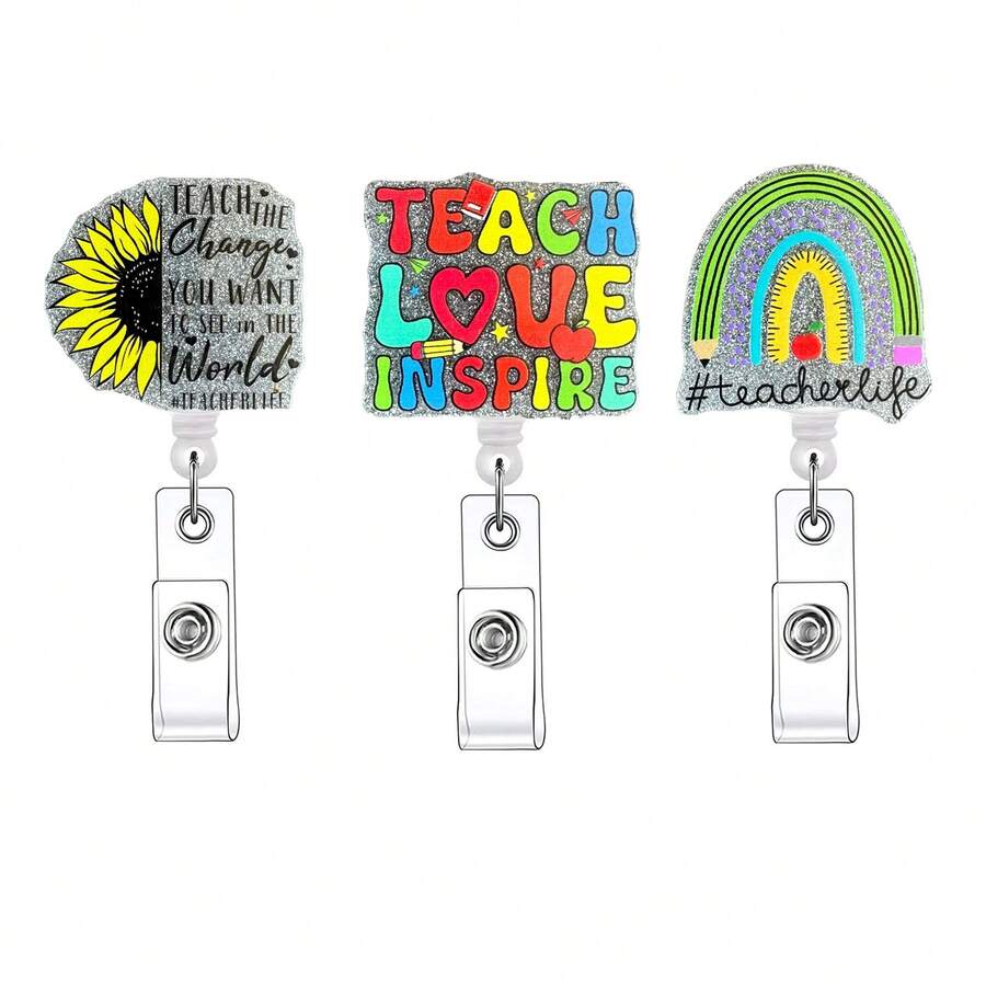 1pc Teacher Retractable Badge Reel,Name Badge Holder With ID Clip For Teacher Gift