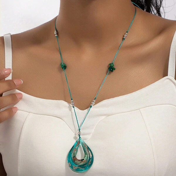 1pc Tear Drop Shaped Pendant Necklace For Women, Personalized & Fashionable Jewelry, Vacation Style Gift