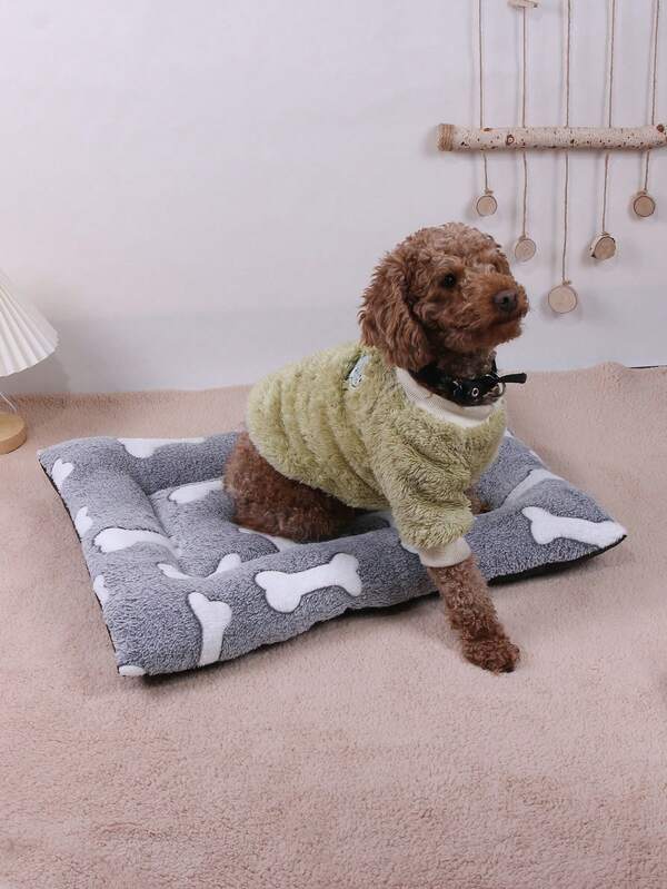 1pc Thicken Fleece Pet Mat With Printed Pattern And Black Non-Woven Fabric Bottom, Suitable For Small And Medium Cats And Dogs Bed