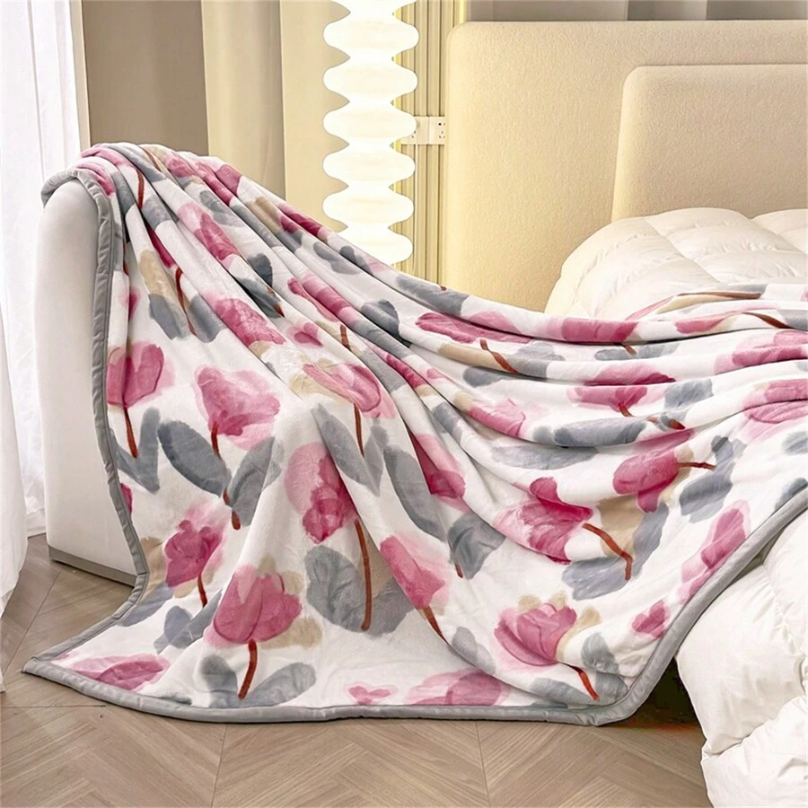 1pc Thickened Flower Patterned Flannel Blanket