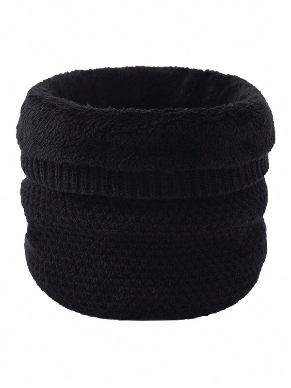 1pc Thickened Warm Single Circle Knitted Scarf With Fleece Liner For Older Kids In Autumn And Winter, Suitable For Outdoor Activities