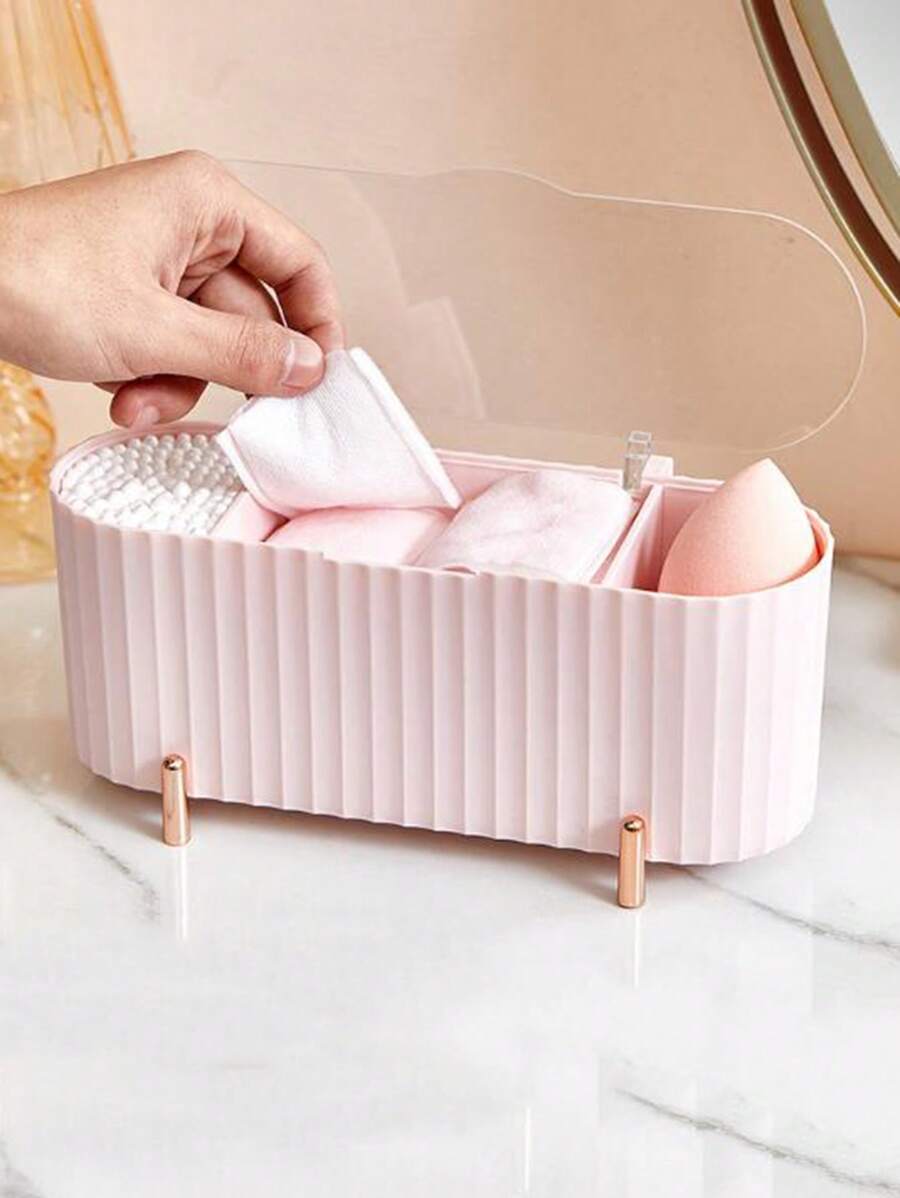 1pc Transparent 3-Compartment Cosmetic Storage Box With Lid