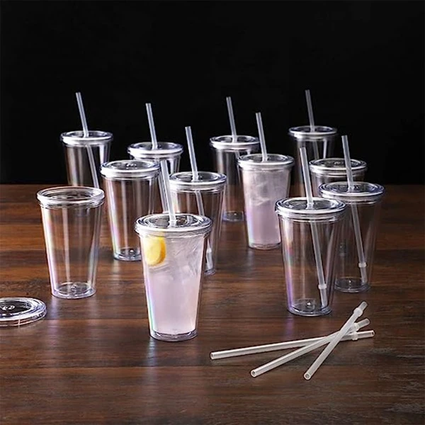 1pc Transparent 450ml Acrylonitrile-styrene copolymer Tumbler With Straw & Lid, Simple Portable Water Bottle For Drinking