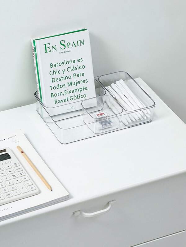 1pc Transparent Desktop Stationery Storage Box Drawer Organizer