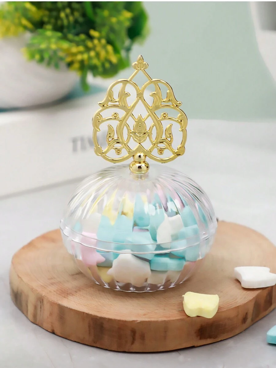1pc Transparent Round Plastic Container With Gold Lid For Wedding Favor, Candy, Incense, Small Items Storage
