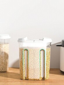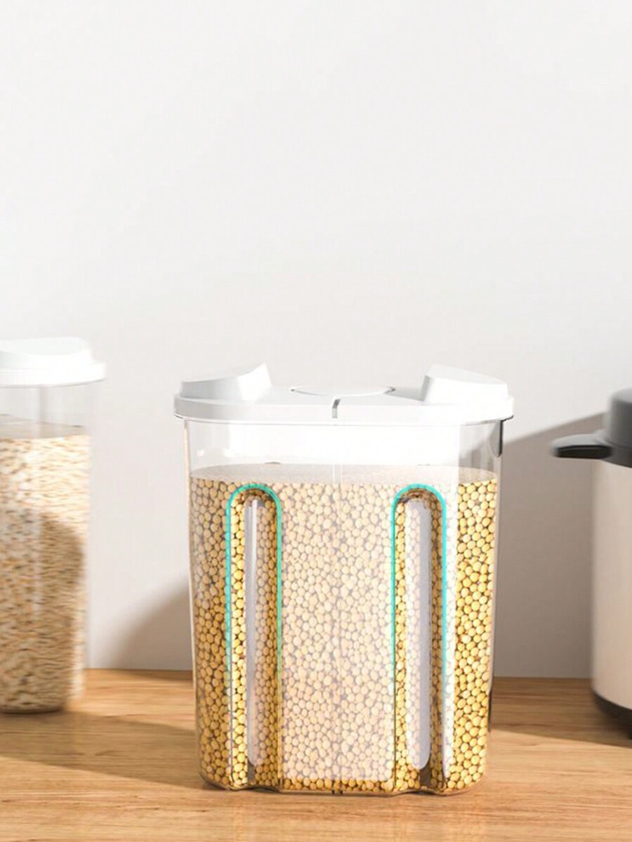 1pc Transparent Sealed Kitchen Storage Container, Large Capacity Grain Storage Jar With Dual Buckles, Anti-Insect Multi-Purpose Food Organizer