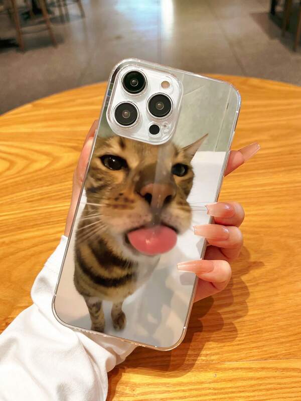 1pc Transparent Tpu Full Coverage Phone Case With Funny Cat Drinking Water & Sticking Out Tongue Pattern, Compatible With Iphone 15/14/13/12/11