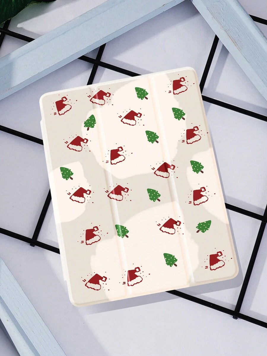1pc Tree And Hat Pattern Tablet Case With Pen Slot, Anti-Drop, Support Sleep/Wake, Compatible With Samsung, Huawei, Xiaomi And Ipad