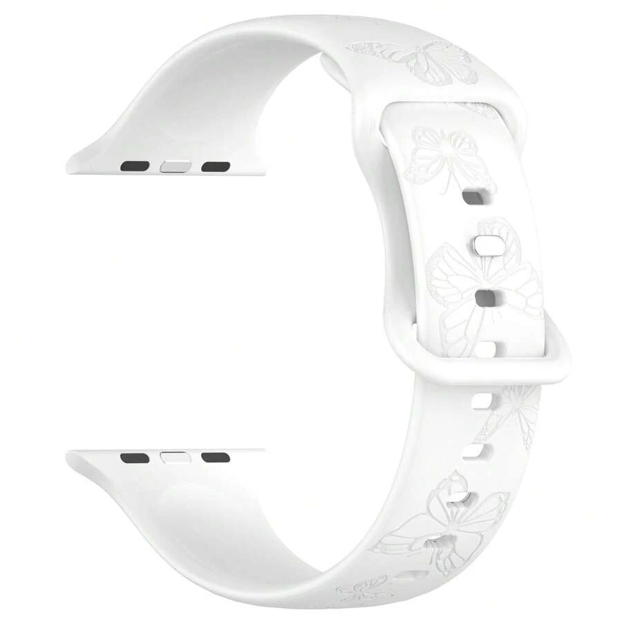 1pc Trendy Butterfly Pattern Radial Carving Craft Silicone Watch Band With Buckle Compatible With Apple Watch 38mm/40mm/41mm/42mm/44mm/45mm/49mm