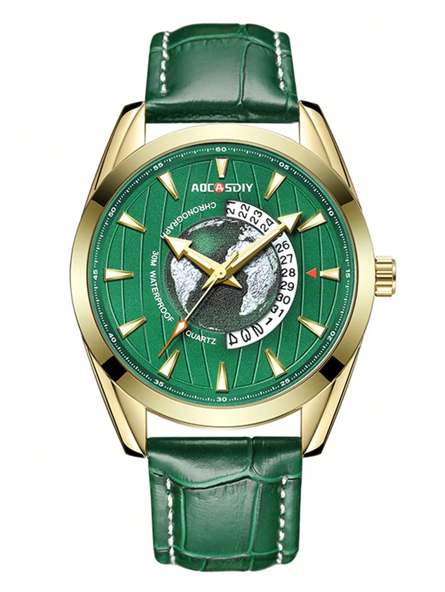 1pc Trendy Fashionable Casual Quartz Wristwatch, Waterproof Sports Watch With Timing & Luminous Function, Green For Men