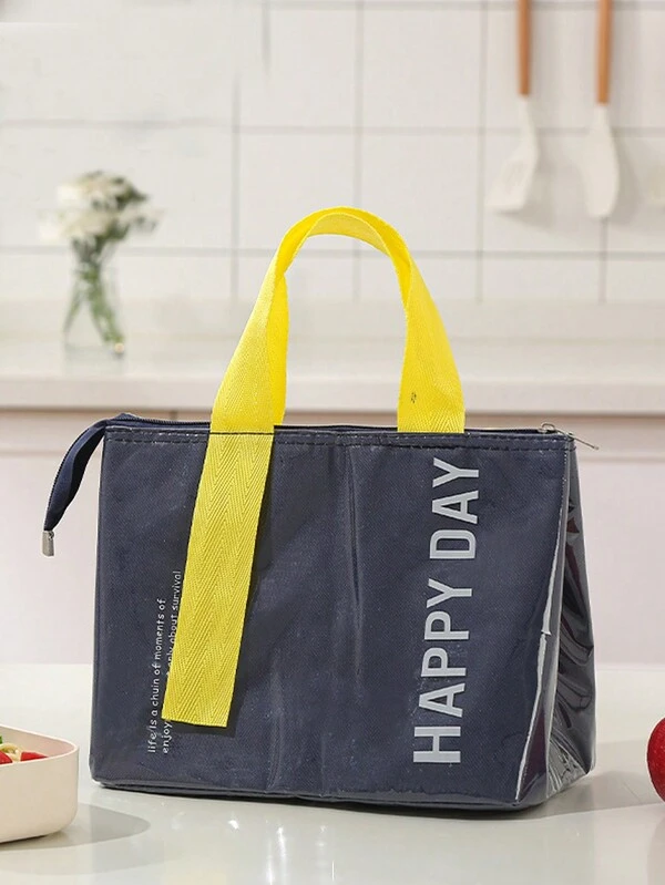 1pc Trendy Waterproof Letter Insulated Lunch Bag, Portable Meal Fresh-Keeping Bag, Perfect Bento Bag For Office, School And Picnic