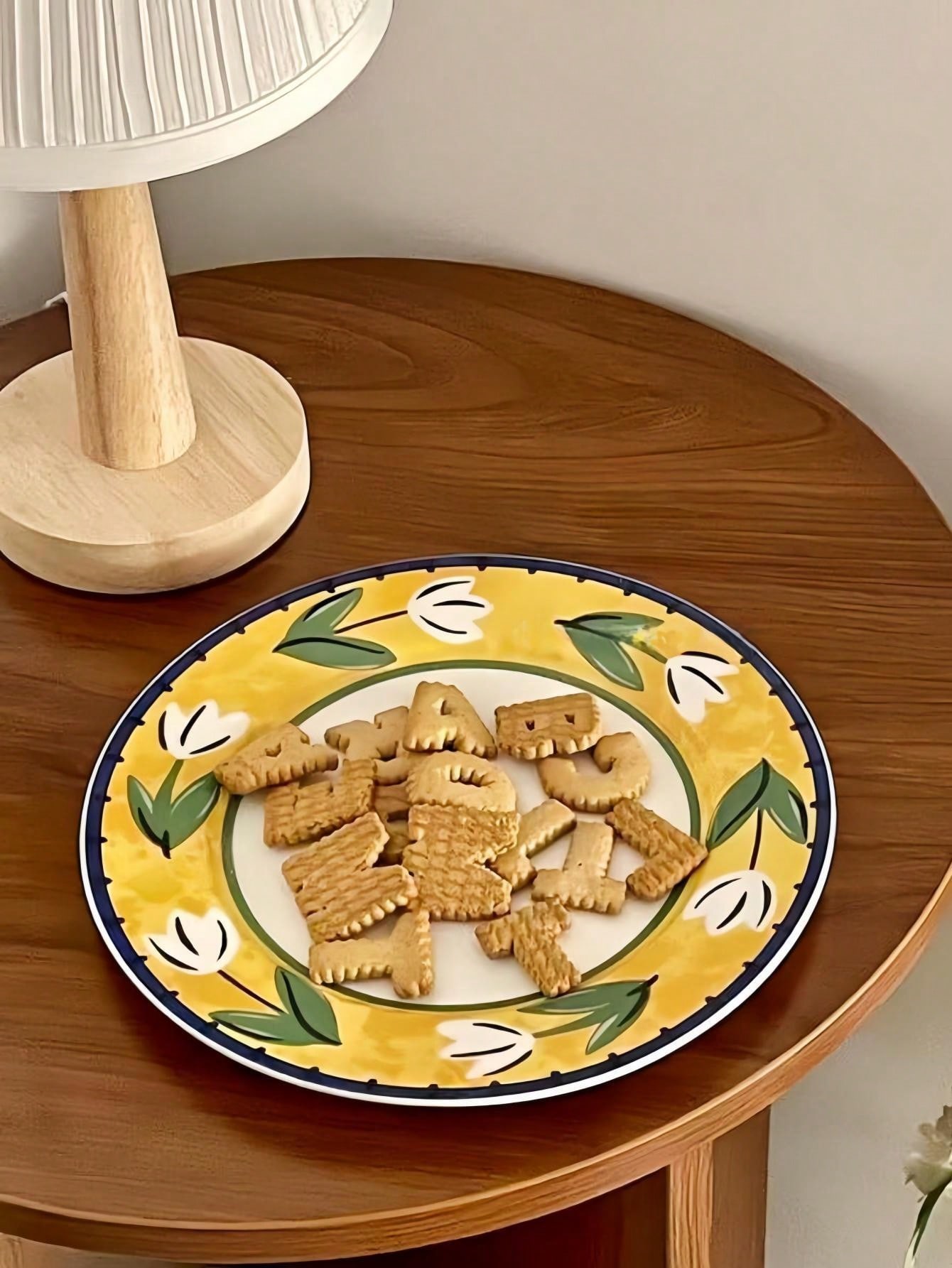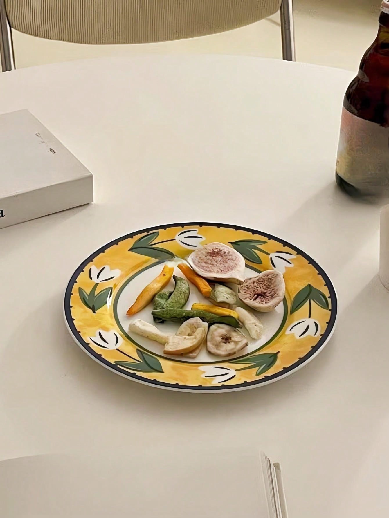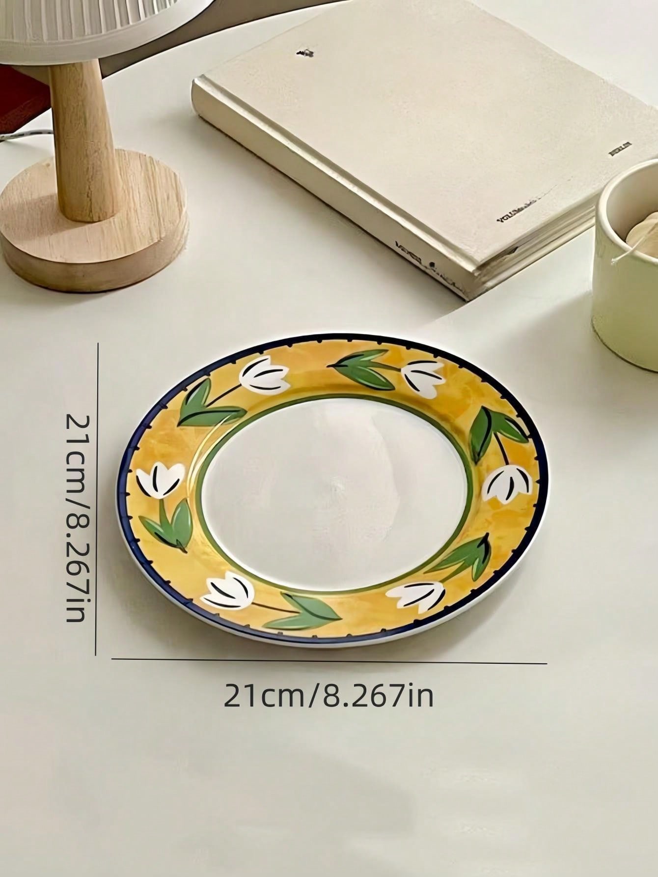 1pc Tulip Ceramic Plate, Vintage Hand-Painted Fruit Tray, Dinner Plate, High-End Dish, Dessert Plate, Pasta Plate For Home, Office, Restaurant