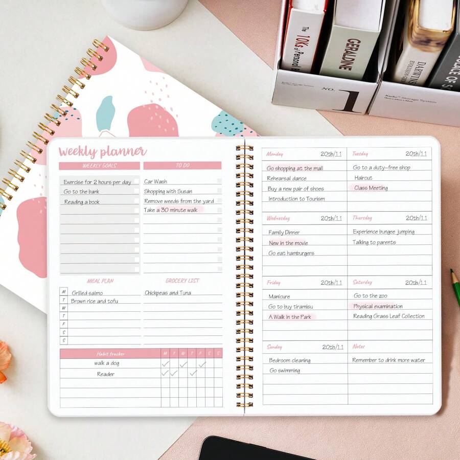 1pc Undated Daily Weekly Planner Notebook With Habit Tracker, To Do List And Goals Office School Supplies, 5.8*8.6In, 52 Sheets-Pink