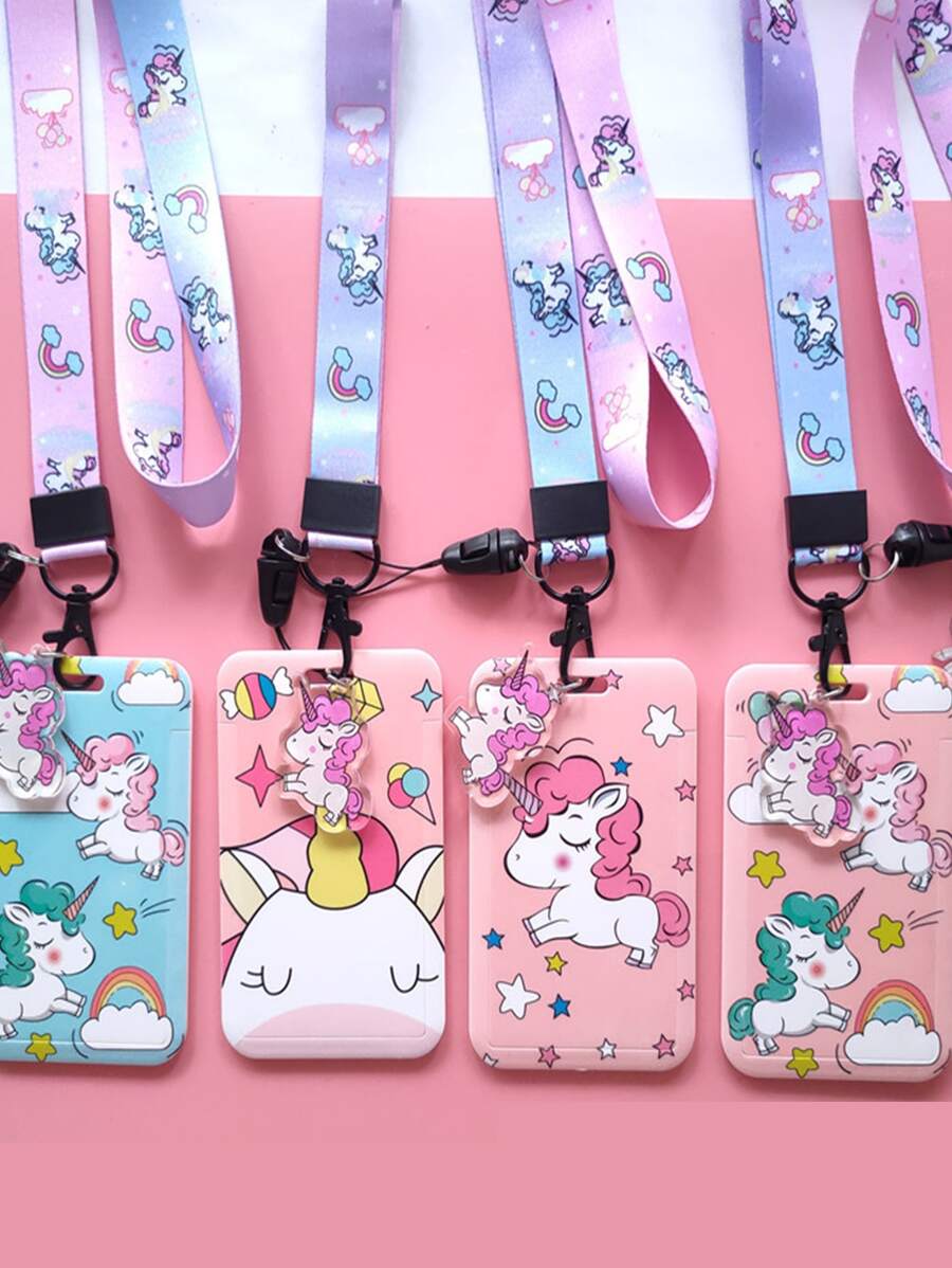 1pc Unicorn Pattern Random Card Cover With Lanyard