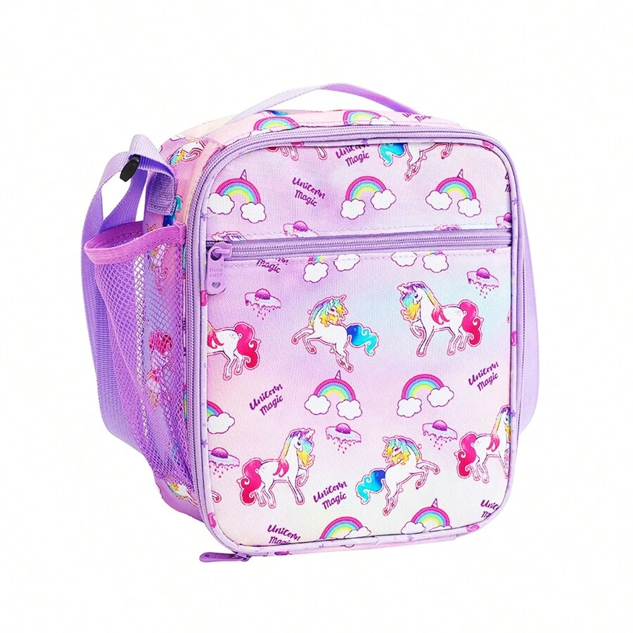 1pc Unicorn Pritned Insulated Lunch Bags, Reusable Lunch Bag With Waterproof Liner And Exterior Zippered Pockets, Keeps Food Fresh In School Lunch Boxes, Small Portable Lunch Bag, Home Kitchen Supplies