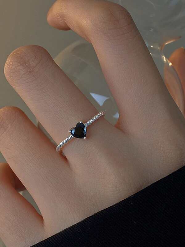1pc Unique Design Light Luxury Fashionable Personality Black Cubic Zirconia Heart Twisted Ring