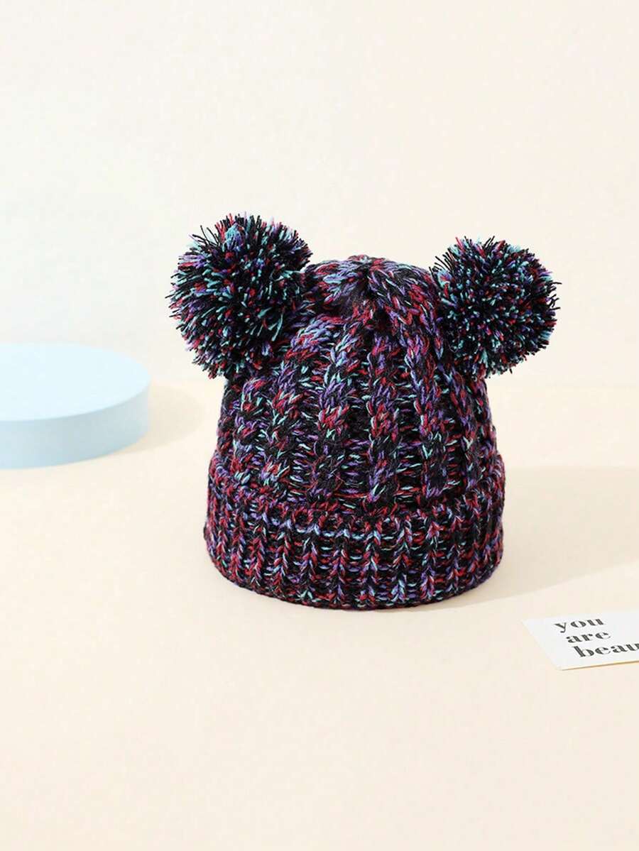 1pc Unisex Black & Red Mixed Ski Hat With Y2k Style Pompoms, Winter Warm & Stylish Beanie Cap For Outdoor Sports And Daily Wearing