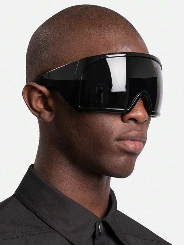 1pc Unisex Black-Frame Gray Lens Protective Goggles With Large Frame, Fashionable Eyewear For Outdoor Travel