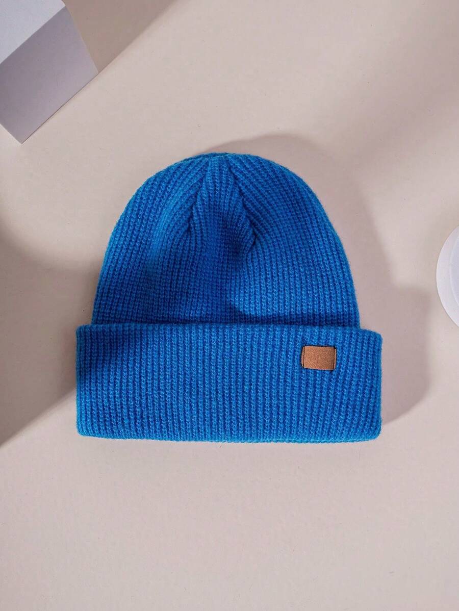 1pc Unisex Blue Ski Hat With Y2k Style Tag, Knitted Beanie For Outdoor Activities And Casual Wear, Winter