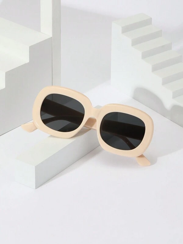 1pc Unisex Korean Style Trendy Sun Glasses With Tr Yellow-Brown Frame And Grey Lens, Perfect For Driving And Traveling