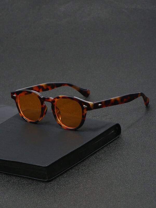 1pc Unisex Leopard Print Oval Shape Rivet Detail Casual Decor Fashionable Glasses