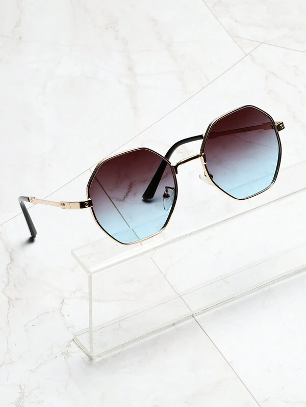 1pc Unisex Metallic Geometric Frame Decor Retro Fashion Sunglasses For Casual Events
