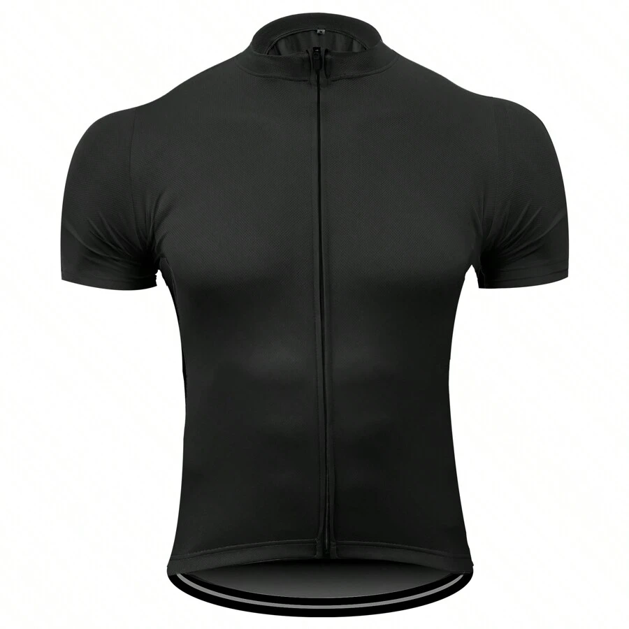 1pc Unisex Professional Cycling Jersey Shirt, Breathable & Quick Dry, Spring & Autumn, Thin Black Solid Color Gym Clothes Men