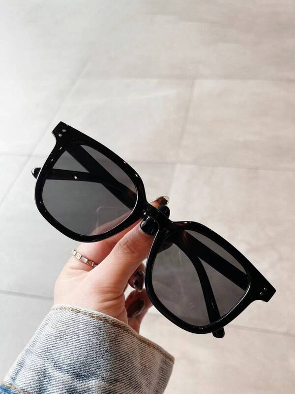1pc Unisex Solid Color Fashionable Classic Sunglasses With Geometric Frame Design, Uv Protection, for driving fishing
