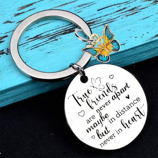 1pc Unisex Stainless Steel Butterfly Shaped Keychain With Ombre Color, Diy American Style Gift For Best Friends On Christmas And Valentine's Day