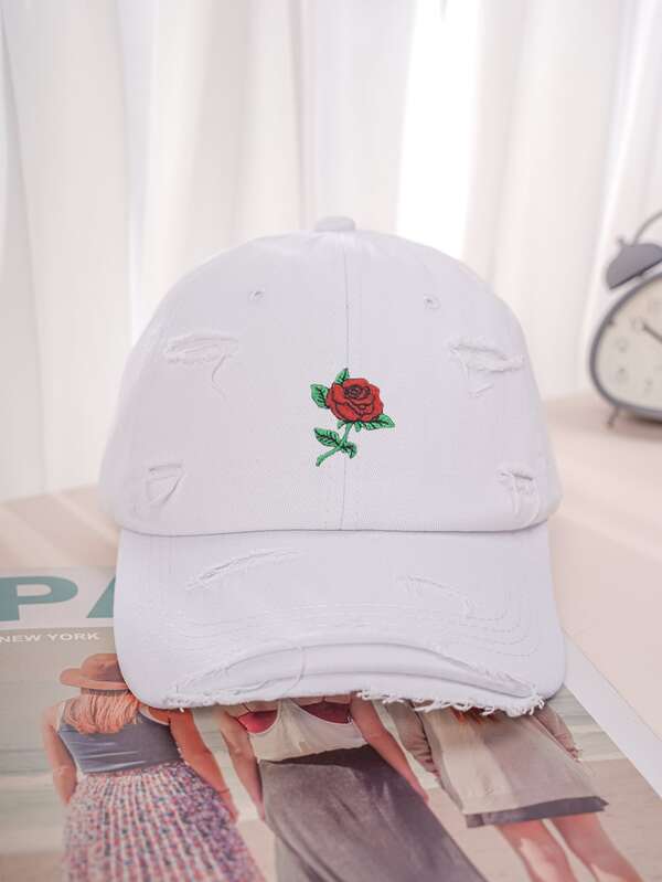 1pc Unisex Y2k Style Rose Embroidery Distressed Baseball Cap For Outdoors And Daily Use, Sun Protection