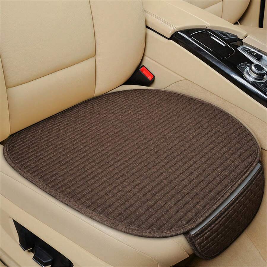 1pc Universal Car Seat Cushion, Four Seasons Non-Slip Square Plaid Linen Material Without Backrest, Suitable For All Cars, Can Also Be Used As An Office Chair Cushion