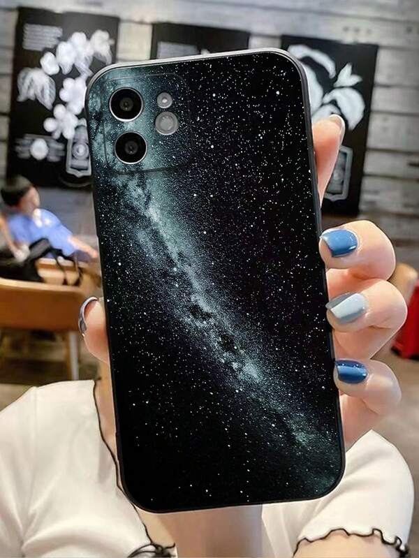 1pc Universal Space-Themed Shockproof Black Soft Phone Case For Apple/Huawei/Xiaomi/Oneplus/Samsung/Honor