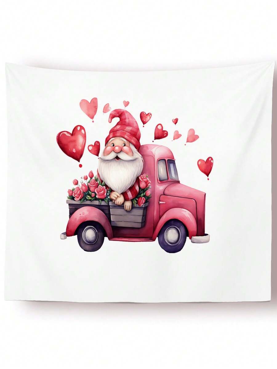 1pc Valentine'S Day Heart Dwarf & Floral & Car Print Tapestry