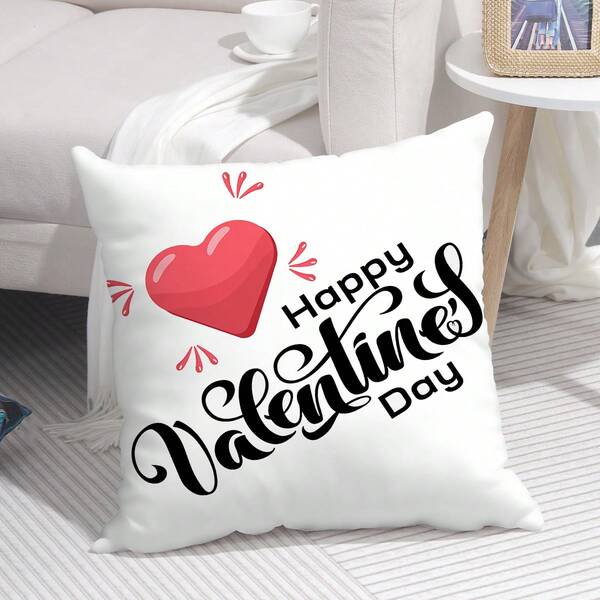 1pc Valentine'S Day Love Heart Letter Printed Pillowcase, Nordic Style Home Decorative Pillow Cover For Living Room Sofa Cushion Cover