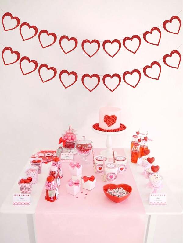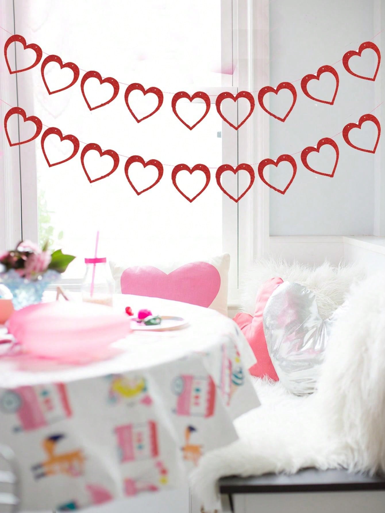 1pc Valentine'S Day Theme Party Decoration Red Hollow Out Heart Shaped Banner