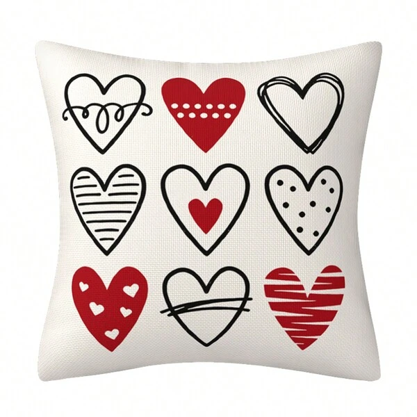 1pc Valentine'S Day Themed Love Heart Decorative Pillow Cover, Sofa Cushion Case, 18x18 Inches