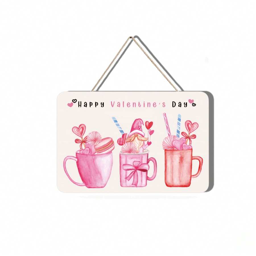 1pc Valentine'S Day Wooden Pendant Decoration Pink Heart Design, Suitable For Decorating Restaurants, Bars, Bedrooms And Parties, Great Choice For Holiday Decoration And Valentine'S Day Gift (Comes With One Piece Of Rope)