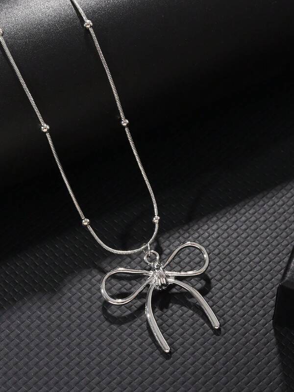 1pc Vintage & Personalized Simple Style Bowknot Shaped Gilding Pendant Necklace For Commuting, Dating, Best Friends' Gift