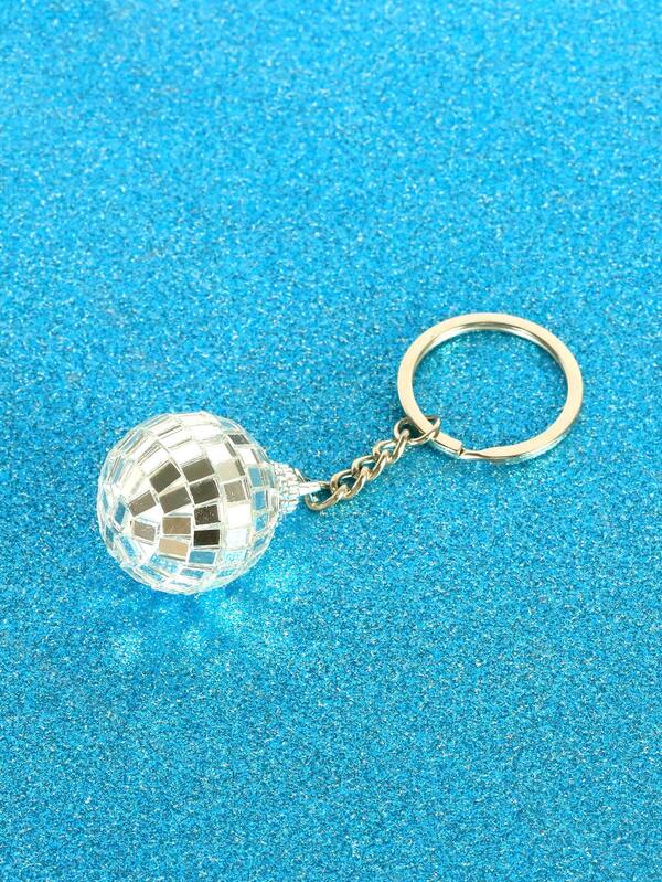 1pc Vintage 70s Disco Theme Us America Style Round Ball Silver Keychain