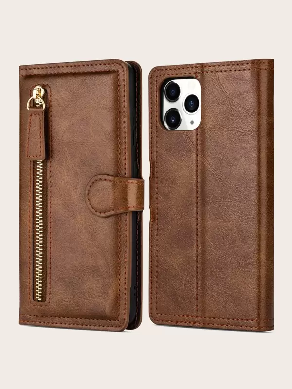 1pc Vintage Buckle Zipper Card Slot Wallet Style Multifunctional Phone Case For Business Men Iphone11 13 14 15pro Max Samsung Galaxy