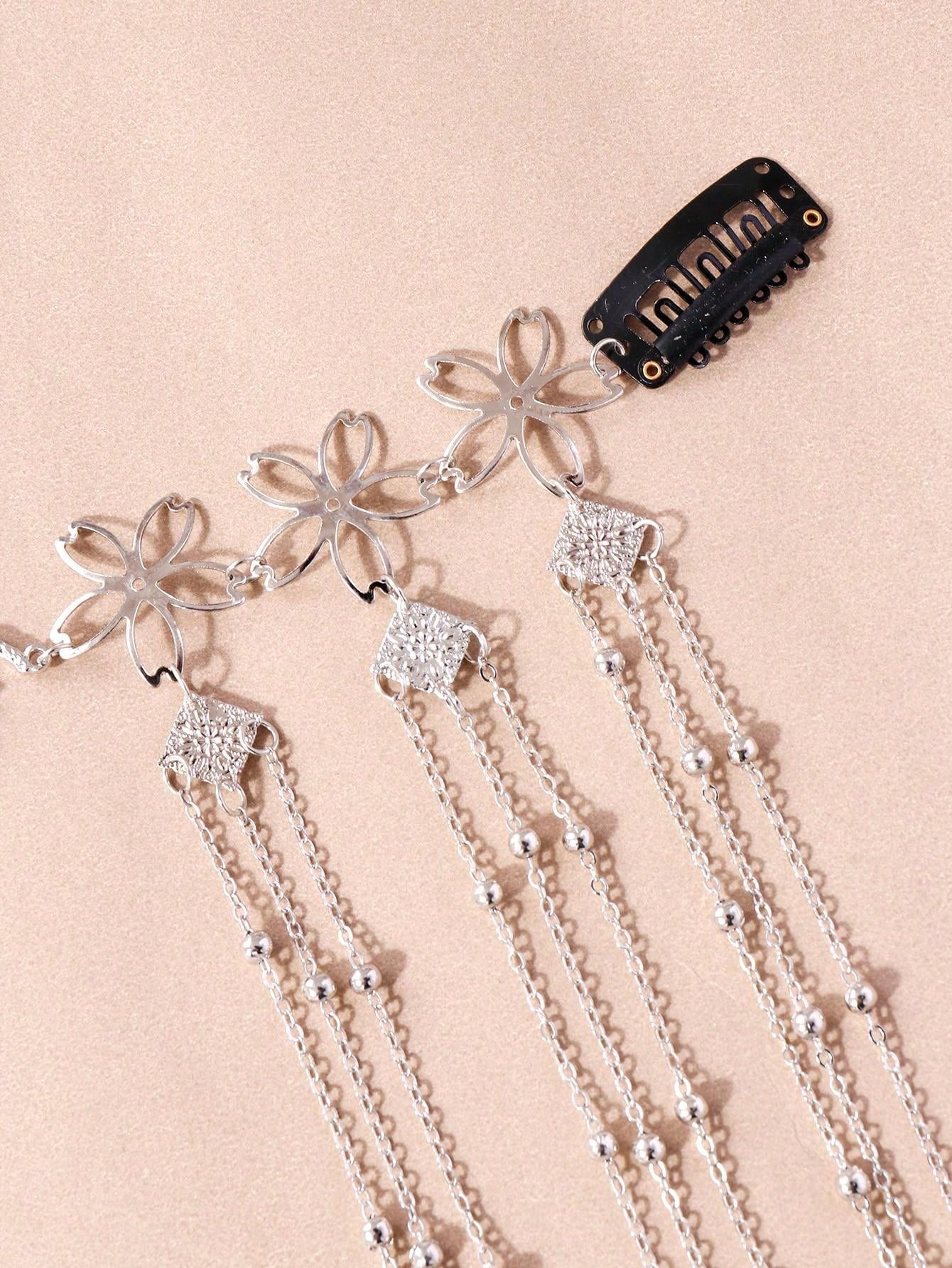1pc Vintage Butterfly Hair Chain With Pearls And Tassels, Exotic Style